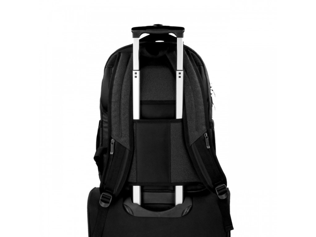 V zadní části batohu naleznete také speciální Trolley popruh pro upevnění na rukojeť kufru.