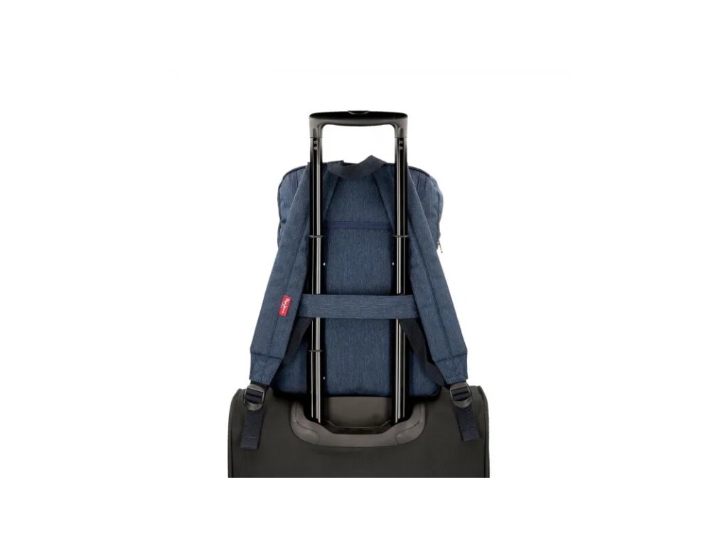 V zadní části batohu naleznete také speciální Trolley popruh pro upevnění na rukojeť kufru.