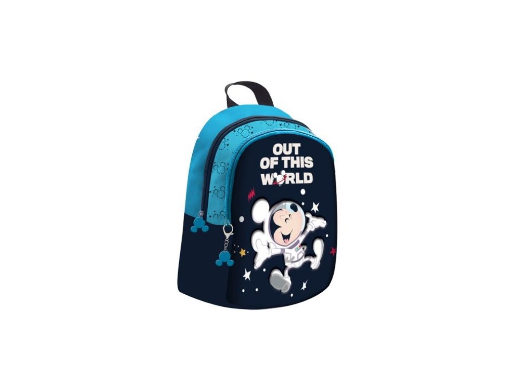 Dětský kvalitní předškolní batoh v designu Mickey Mouse s jednou hlavní kapsou a jednou přední kapsou, zapínání na zip, boční síťovaná kapsa na láhev, polstrované popruhy a záda batohu, poutko na zavěšení. Rozměry: cca 24 x 29 x 14 cm, vhodný pro děti od 3 let.Doplňkové parametry