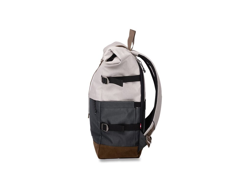 rozšíriteľná hlavná komora s rolovacím uzatváraním na patentku a popruh s kovovou prackou