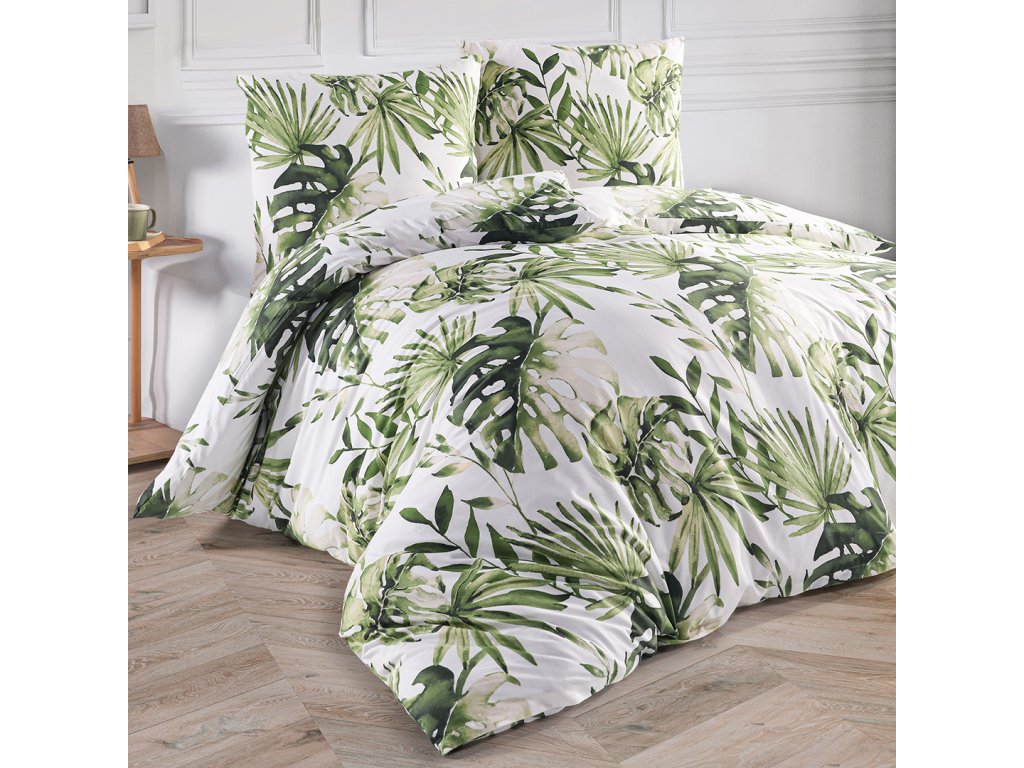 Bavlněné povlečení s velkými listy cizokrajné Monstery, vytvoří ve Vaší ložnici oázu klidu