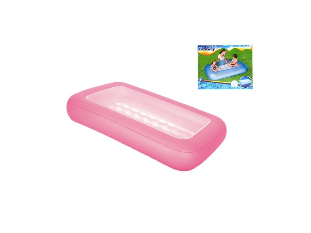 Nafukovací bazén je dostupný ve dvou barvách - v modré nebo růžové barvě. Požadovanou barvu prosím uveďte do poznámky. Maximální objem vody je 102 litrů Rozměr bazénu je: 165 x 104 x 25cm Vhodné pro děti již od 24 měsícůDoplňkové parametry