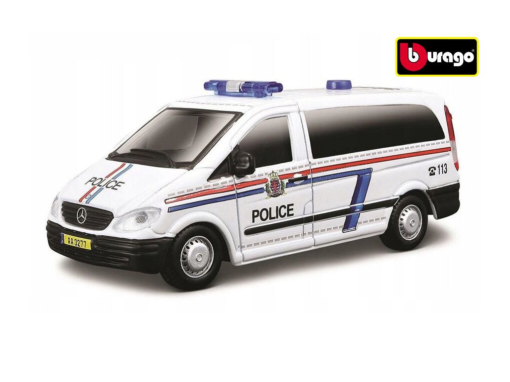 Doplňte svou sbírku Bburago o další skvělé modely aut v měřítku 1:50. Kovový model Mercedes-Benz Vito, verze Policie, Četnictvo. Rozměr: cca 16 x 8 cm Pro děti od 3 letDoplňkové parametry