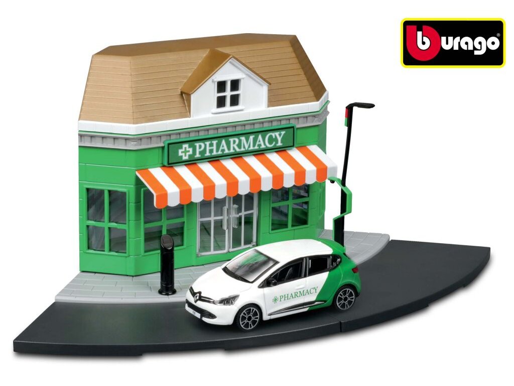 Kovový model ze serie Bburago city 1:43 18-31511 Lékárna, Karosérie modelů je vyrobena z kovu a obsahuje velké množství detailů. Vždy jste chtěli postavit vlastní město? Nyní je to možné s městskými sadami her ze série Bburago StreetFire. Lékárna obsahuje kromě plastové budovy s pohyblivými dveřmi také pouliční a chodníkový komponent a různé doplňky. A nejlepší věc? Dostanete také skvělé auto Bburago v měřítku 1:43. Hrací sadu lze kombinovat s dalšími hracími sadami série Bburago Doporučený věk: od 3 letDoplňkové parametry
