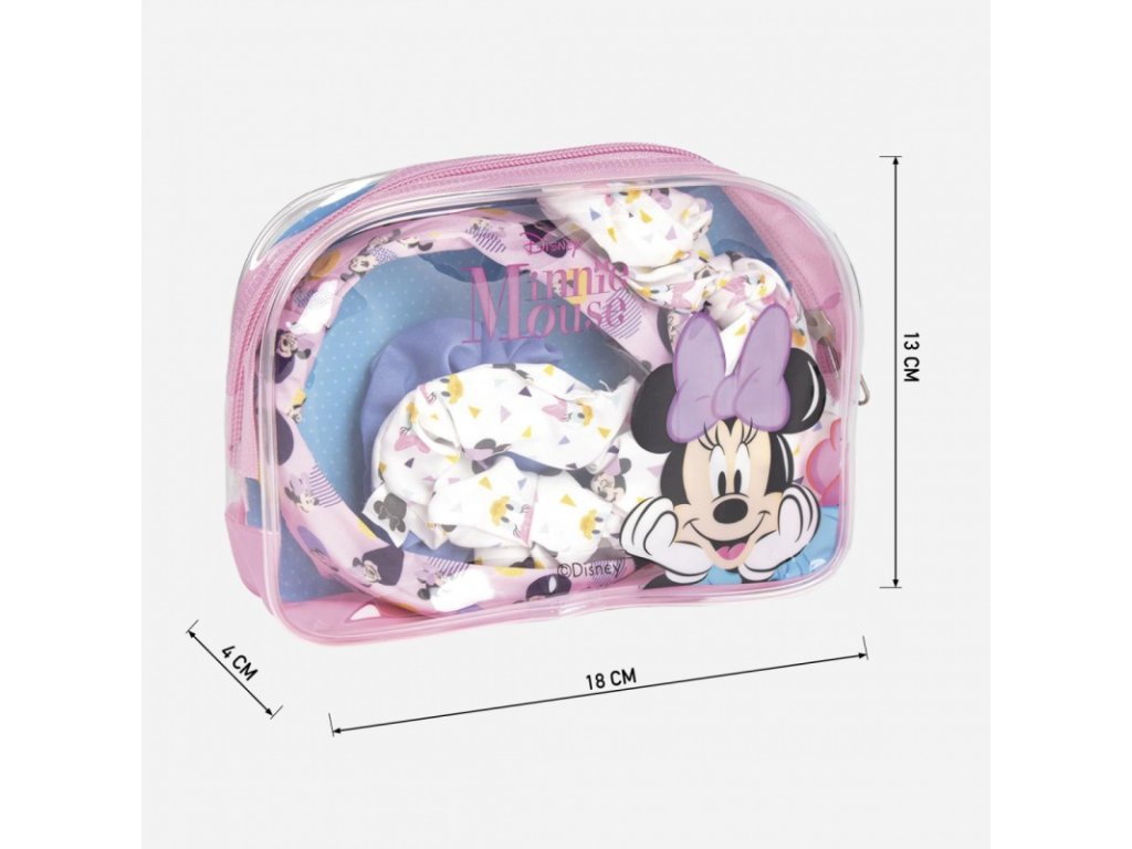 Beauty set v licenci oblíbené Minnie Mouse. Balení obsahuje 2 čelenky a 2 gumičky do vlasů. Vhodné od 3 let.• elegantní balení v zipovacím transparentním pouzdře