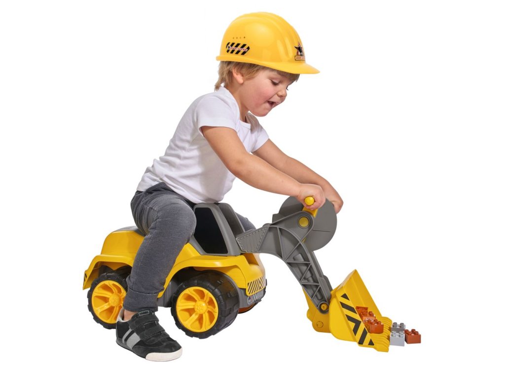 Robustní nakladač z kvalitního plastu, s pohyblivým nakládacím zařízením a ergonomickým pohodlným sedadlem. Široké omyvatelné pneumatiky vyrobené z měkkého materiálu z něj činí ideální hračku pro vnitřní i venkovní použití. Nosnost: 50 kg; výška sedadla: 22 cm.Doplňkové parametry