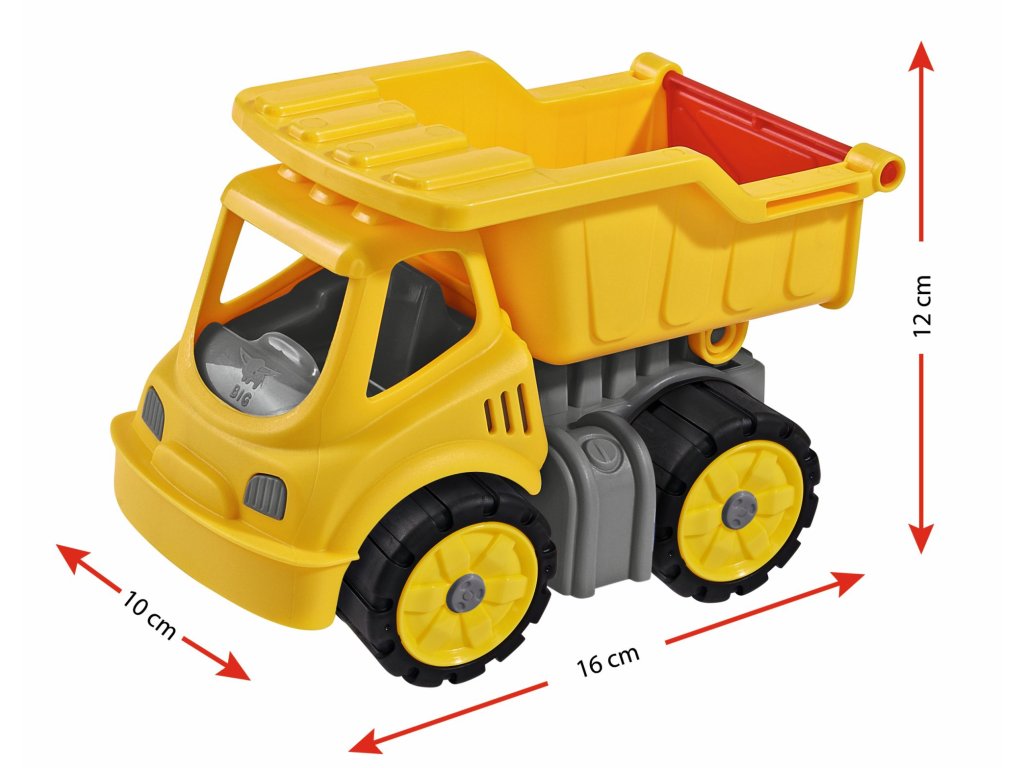 Sklápěčka z kvalitního plastu. Pohyblivá korba. Pneumatiky z materiálu, který nezanechává stopy na podlaze. Velikost 16,5 cm.Doplňkové parametry