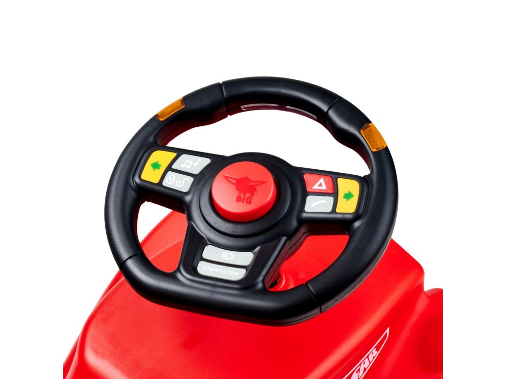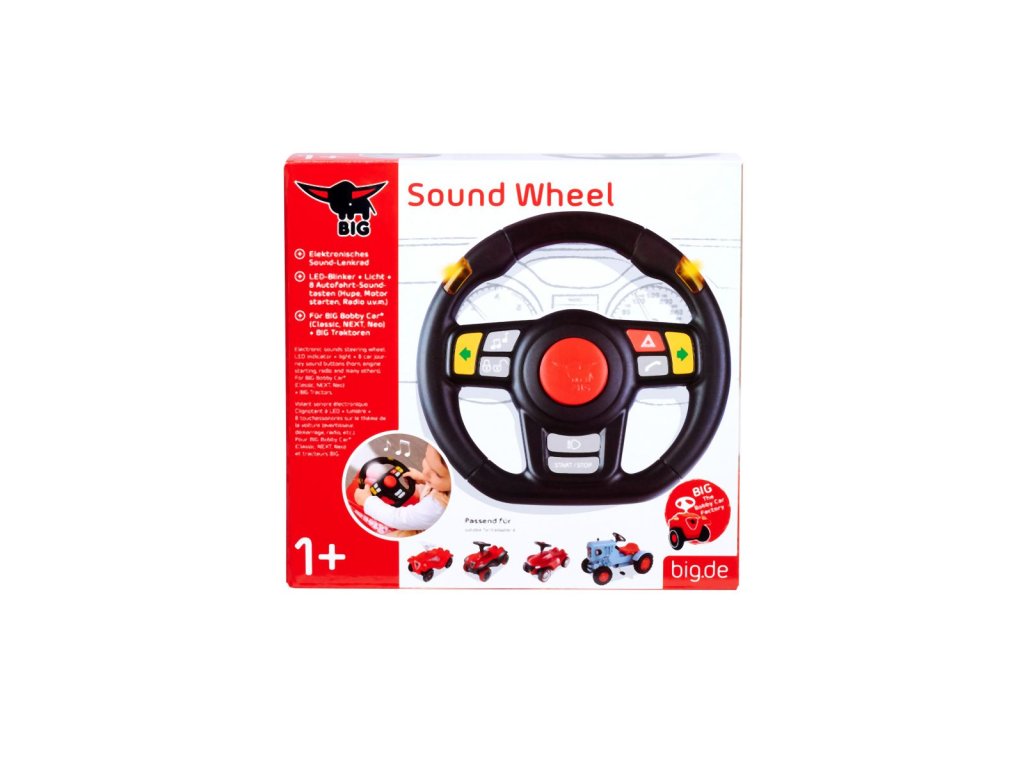 Multifunkční volant se světelnými a zvukovými efekty, voděodolný. Kompatibilní se všemi Bobby Car odrážedly od roku 2010 (Classic, Neo, Next). 8 různých zvuků, funkce: ukazatel odbočení vlevo/vpravo (LED světlo) + přísl. zvuk, zvuk zamykání auta, klakson, zvuk vytáčení tel. čísla a vyzvánění, zvuk startování a samozřejmě rádio.Doplňkové parametry