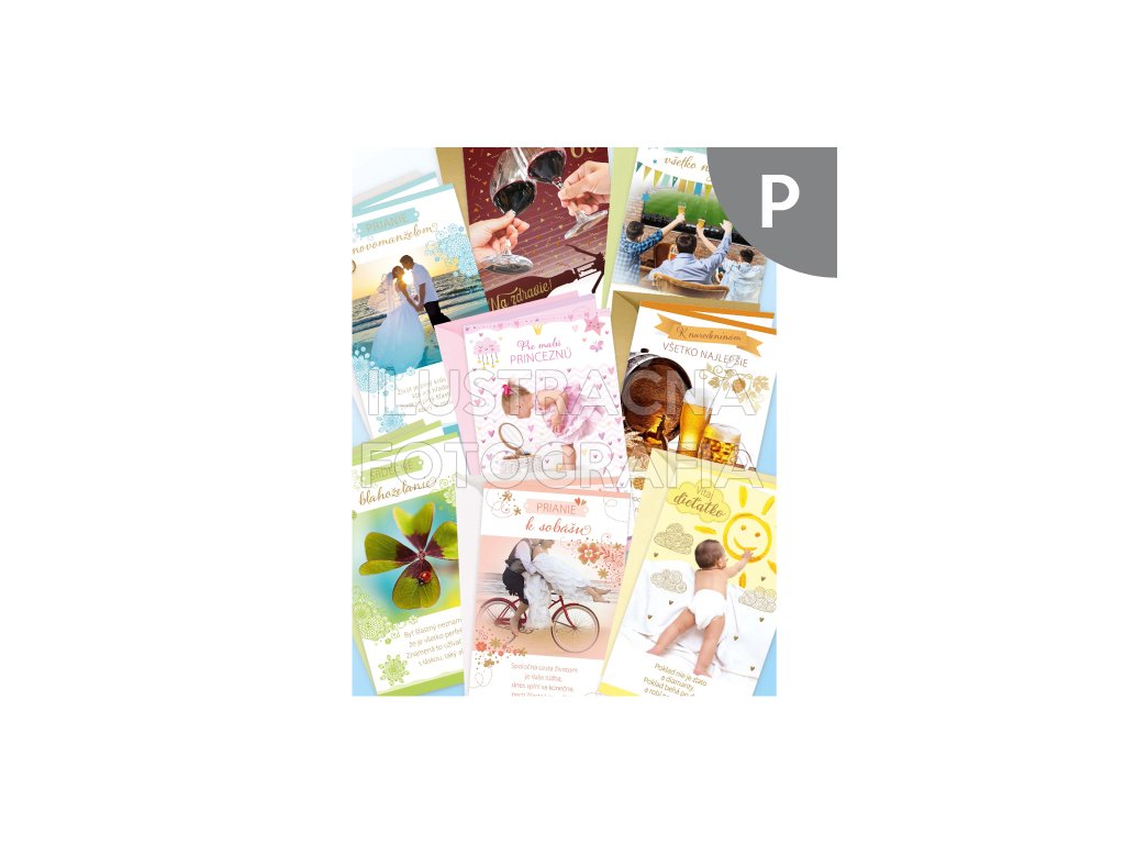 Blahopřejný karta P - gratulačná