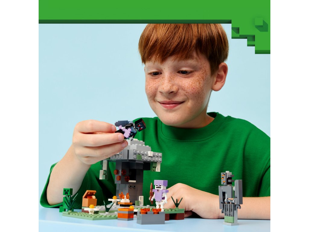 Se stavebnicí LEGO® Minecraft® (21586) Bledá zahrada pro holky a kluky od 7 let hráči vstoupí do jednoho z nejpodivnějších a nejúžasnějších biomů hry Minecraft®. Figurka Creakinga z kostek LEGO se postaví hrdinnému okřídlenému mothmanovi zatímco Creeper™ a Kostlivec se potulují po bledé zahradě. Bledý dub je pokrytý mechem a květy a obsahuje vzácnou pryskyřici a vzácné srdce, které děti můžou získat buď odstraněním kůry, nebo stisknutím tlačítka na zadní straně stromu, které srdce vysune. Minifigurka Mothmana má krovková křídla a drží kouzelnou sekeru a minifigurka Kostlivce má diamantovou zbroj a luk. Mezi další doplňky, které podněcují fantazii, patří truhla, hrudky pryskyřice, táborák a vepřová kotleta. Stavebnice je kompatibilní s aplikací LEGO Builder, která dětem umožňuje přibližovat a otáčet modely ve 3D a sledovat postup stavění pomocí srozumitelných digitálních návodů. Stavebnice obsahuje 243 dílků.Doplňkové parametry