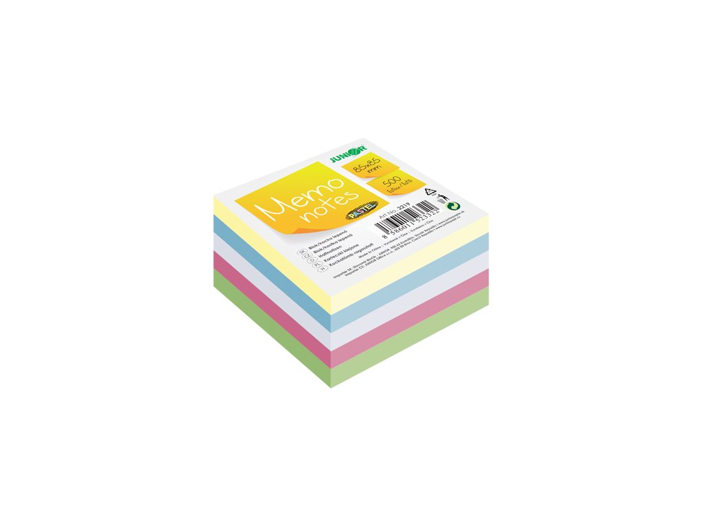 Barevné poznámkové bloky (špalík) lepené, balené ve fólii, rozměry 8,5 x 8,5 cm, výška 4 cm.Doplňkové parametry