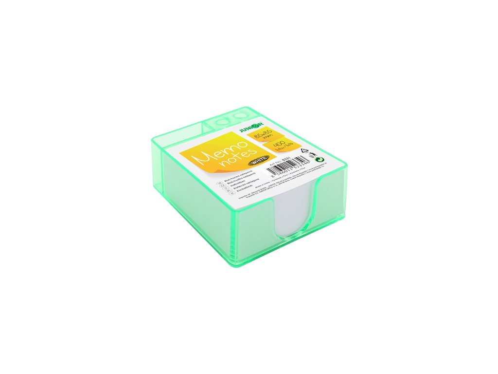 Bílé poznámkové bloky (špalík) nelepené v plastovém stojanu. Rozměry 8,5 x 8,5 cm, 400 listůDoplňkové parametry