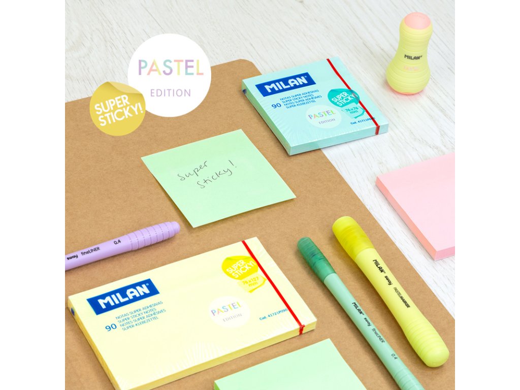 Balení 90 modrých pastelových superlepiacich poznámek 76 x 76 mm. Super lepivé odnímatelné lepicí poznámky, které vydrží déle i na drsných površích. Modrá pastelová barva.Doplňkové parametry