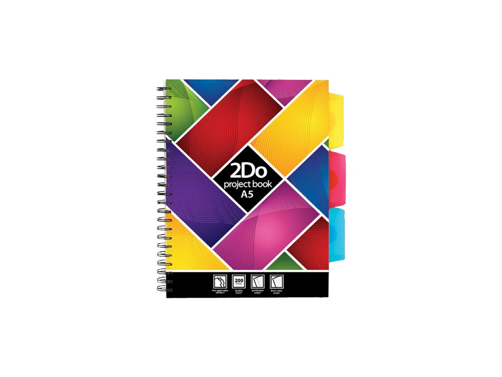 Blok spirálový linkovaný A5 s pěti pohyblivými oddělovači; jednotlivé listy jsou děrované a perforované. 100 listů / 200 stran. 80g / m2.Doplňkové parametry