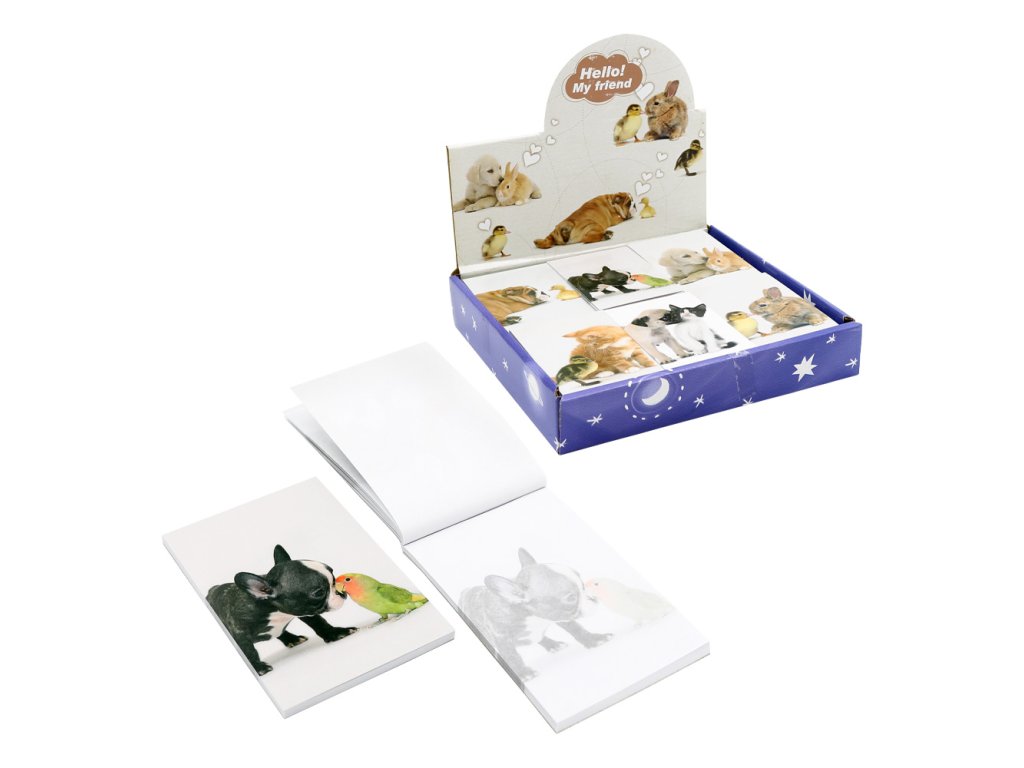 Mini bloček na psaní poznámek s potiskem roztomilých domácích mazlíčků.