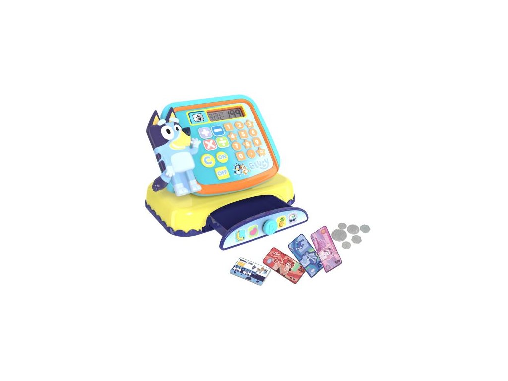 Bluey pokladna s efekty. Velikost 18 cm. Baterie 1xAA součástí. Peníze a platební karta součástí. Vydává zvukové efekty.Doplňkové parametry