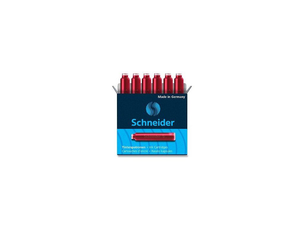 Standardní inkoustové bombičky do plnicích per a rollerů Schneider. Krabička obsahuje 6 ks bombiček. Červený inkoust. Délka bombičky 4 cm.Doplňkové parametry