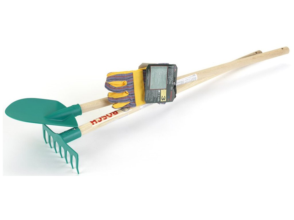 Set zahradního nářadí v licenci Bosch. Skvělý pomocník pro malé pomocníky na práci na zahradě. Set obsahuje Hrabičky, rýček a rukavice. Násada je dřevěná s plastovým koncem. Výška hrabiček 72cm, výška rýče 85cm. Baleno volně, Doporučený věk 3+Doplňkové parametry