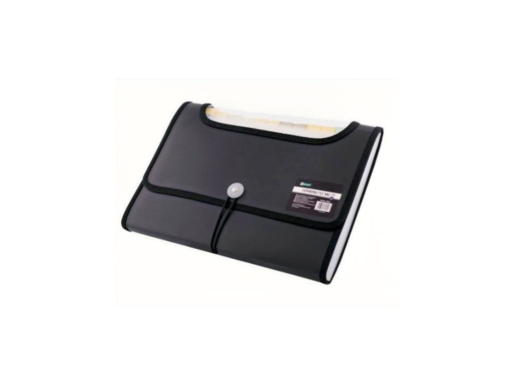 Zapínání na gumičku. 12 přihrádek na dokumenty s vyměnitelnými popisovými štítky a okénkem pro náhled obsahu.Doplňkové parametry