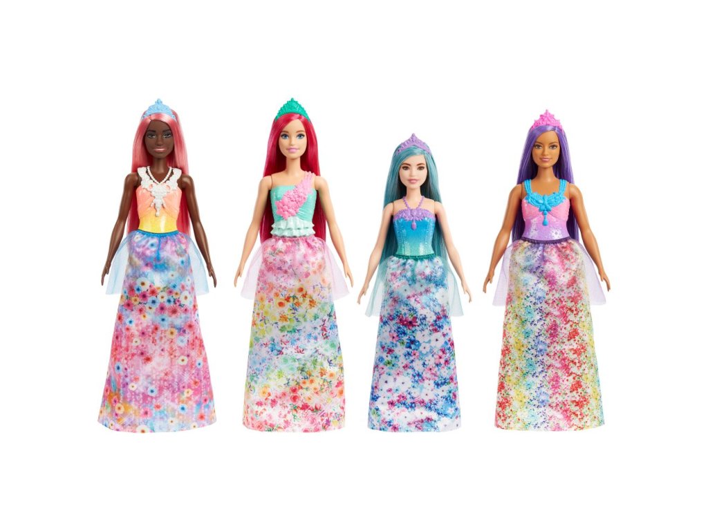 Panenky Barbie™ Kouzelná princezna ze světa Dreamtopia inspirují nekonečné vyprávění ve sladké fantazii, která je vhodná pro královské dobrodružství! Každá princezna má třpytivý ombré živůtek a princeznovskou sukni s barevným květinovým potiskem a tylovým překrytím. Fantastický vzhled každé panenky doplňuje královská čelenka. Prodávají se samostatně dle aktuální nabídky. Panenky neumí samostatně stát. Barvy a vzhled výrobku se mohou lišit.Doplňkové parametry