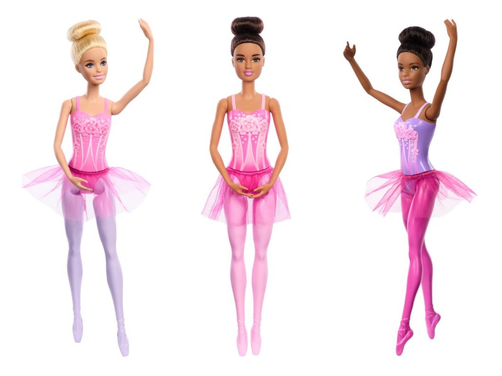 Panenky Barbie® baletky potěší děti odnímatelnými tutu sukýnkami pro kreativní hraní s příběhem! Každá módní panenka má na sobě živůtek s květinovým dekorem a baletní botičky "en pointe" na špičce. Klasický drdol vyčesaný nahoře na hlavě je dokonalým účesem na zkoušku nebo vystoupení. Prodávají se samostatně dle aktuální nabídky. Panenka neumí samostatně stát. Barvy a vzhled výrobku se mohou lišit.Doplňkové parametry