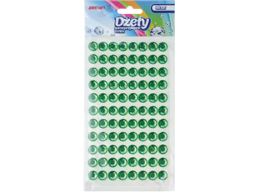 Nalepovací kamínky - plastové, barva zelená, velikost 8 mm. Provedení: 88 ksDoplňkové parametry