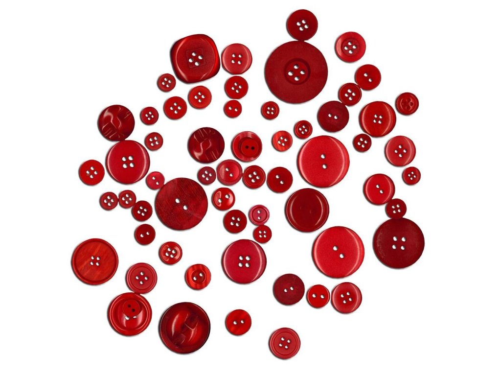 Dekorační knoflíky, mix velikostí a motivů. Balení obsahuje 40g knofílků v červené barvě. Provedení: 40 gDoplňkové parametry
