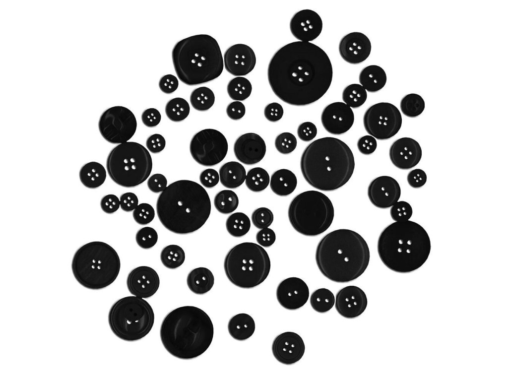 Dekorační knoflíky, mix velikostí a motivů. Balení obsahuje 40g knofílků v černé barvě. Provedení: 40 gDoplňkové parametry