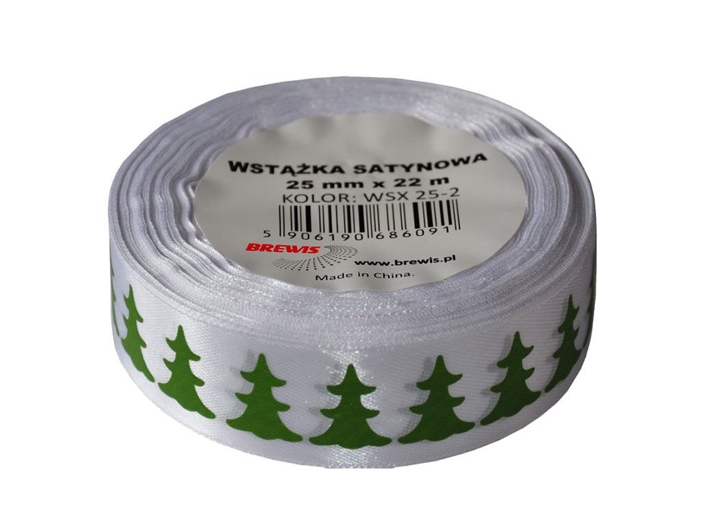 Atlasová stuha jednolící - vánoční motiv. 25mm x 22m.Doplňkové parametry