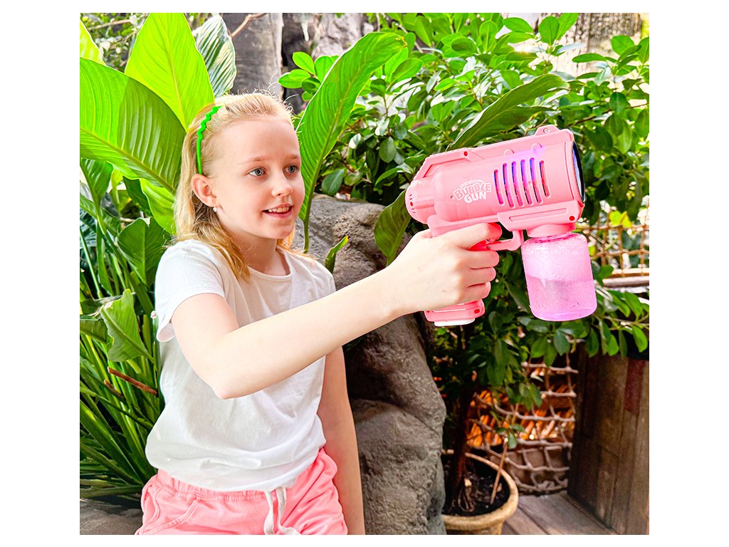 Bublifuková pistole na baterie, která pouhým stisknutím chrlí záplavu bublin. Stiskni spoušť a užívej si nekonečné množství bublin.Doplňkové parametry