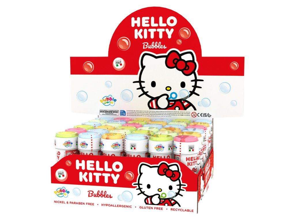 Bublifuk s guľôčkovým labyrintom vo vrchnáku, plastový obal s detským motívom "Hello Kitty". Objem 60ml. Dodávaný jednotlivo, alebo v papierovom boxe po 36 kusov.Doplňkové parametry