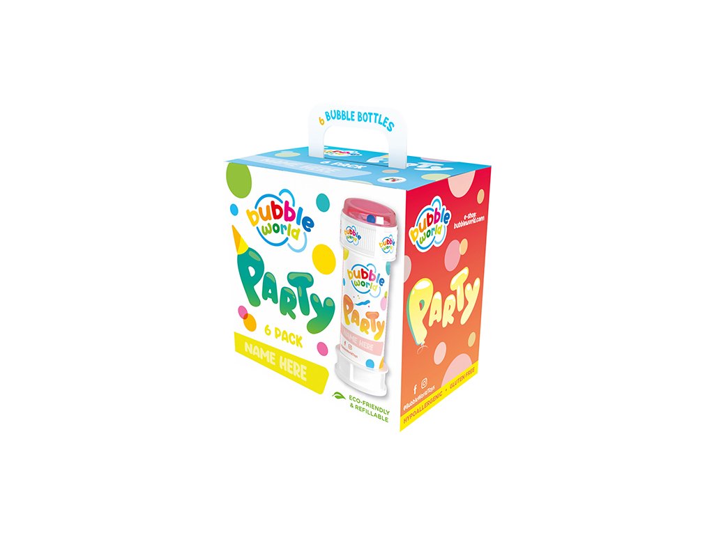 Párty box 6 x 60 ml bublifuků. Užijte si výrobu mýdlových bublin a užijte si léto se svými přáteli a rodinou. Ideální pro narozeninové oslavy pro Vaše dítě a přátel. Cena je za balení 6 ks.Doplňkové parametry