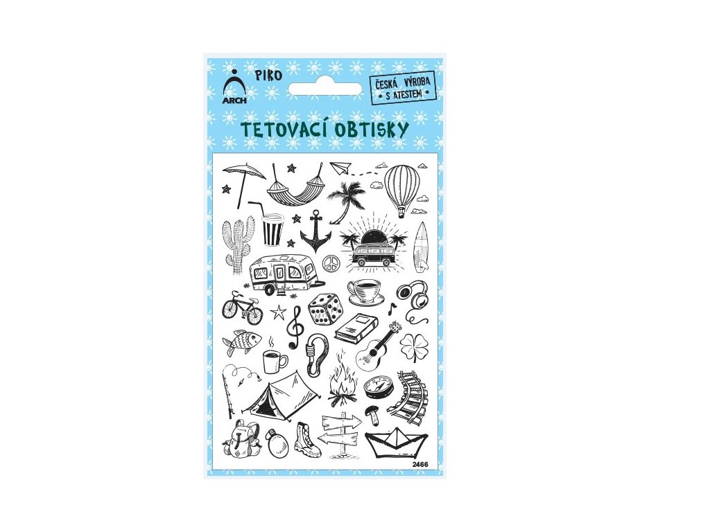 Černé tetovací obtisky s motivem cestování.Doplňkové parametry
