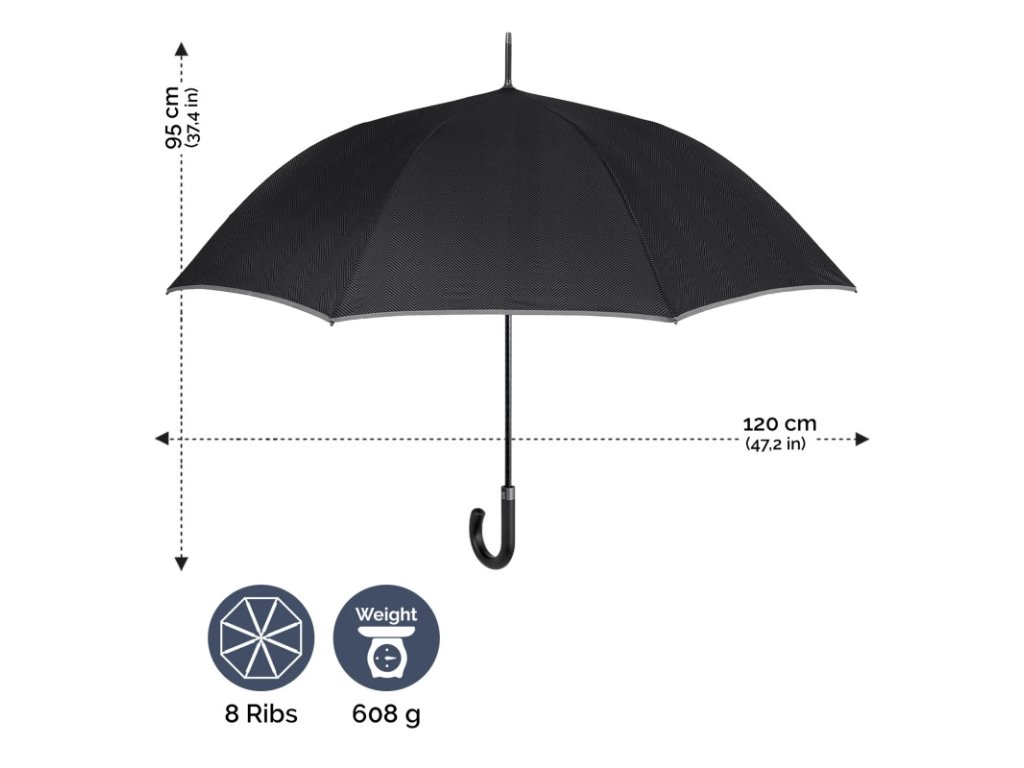 Extra velký unisex ultralehký deštník v černé barvě. Inovativní reflexní profily jej dělají super bezpečným zejména během procházek v tmavších hodinách.Hlavní přednosti: