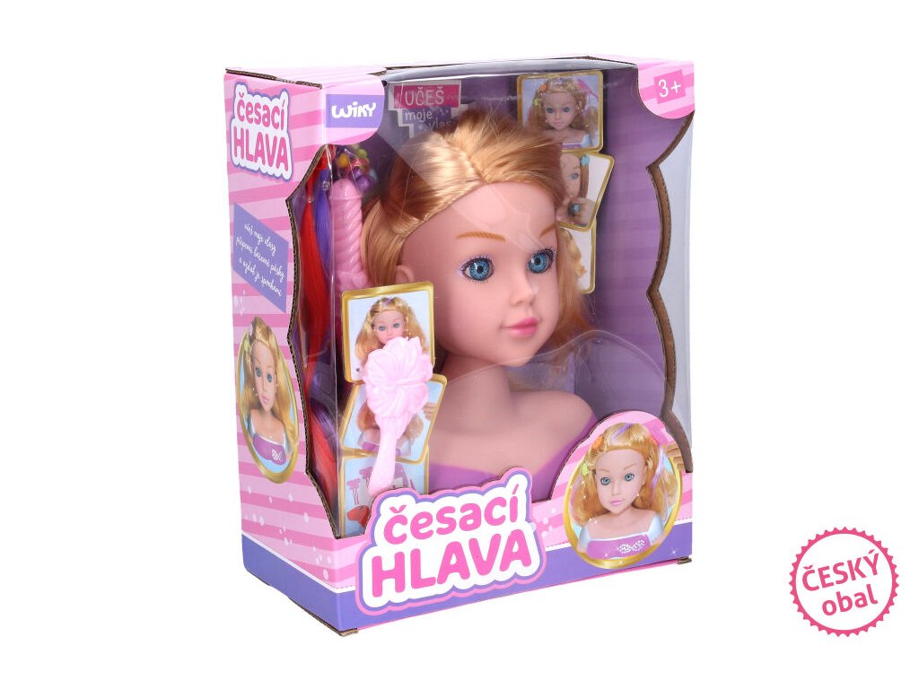 Česací hlava s příslušenstvím 22 cm - doplňky v krabičce