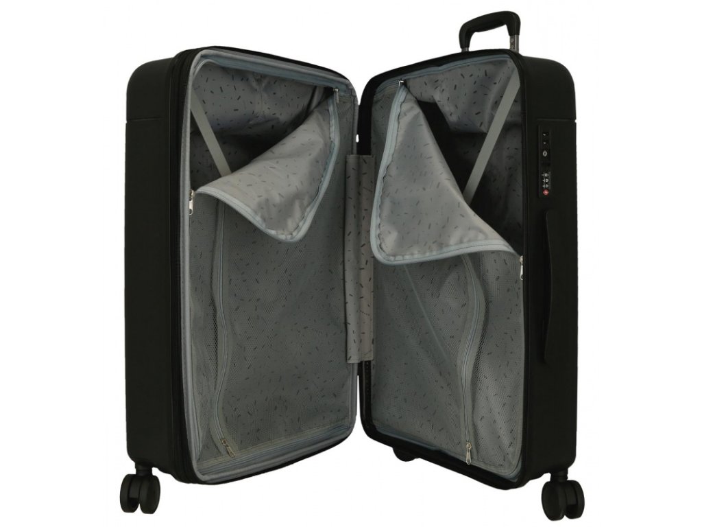 Středně velký rozšiřitelný kufr Movem New Trendy v elegantní černé barvě nabízí moderní design a praktické cestovní funkce. Vyroben je z odolného a lehkého polypropylenu, díky čemuž vydrží každé dobrodružství. Nabízí 72 litrů prostoru, čtyři dvojitá kolečka a integrovaný TSA zámek pro bezpečné cestování.