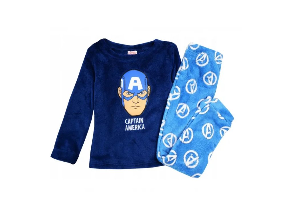 Dětské fleecové pyžamo AVENGERS Captain America. Toto krásné a teplé pyžamo jistě potěší každého malého fanouška této postavičky. Kvalitní potisk na tričku i na kalhotách. Pohodlné kalhoty s elastickým pasem.• 100% polyester - jemný fleec / polar fleece