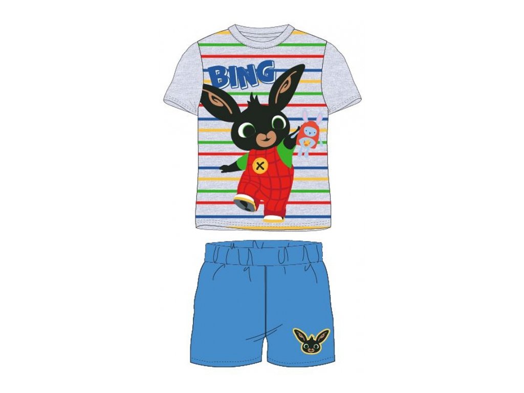 Chlapecké letní pyžamo s motivem králíčka Binga, příjemné šortky díky elastickému gumovému průvleku. Materiál: 100% bavlna 160 g/m², šedá melange: 95% bavlna + 5% viskóza, 160g/m. Barevné provedení - horní díl šedý s potiskem, šortky modré s potiskem. Velikosti: 92 - 2 roky98 - 3 roky104 - 4 roky 110 - 5 let116 - 6 letVelikost vyjadřuje výšku dítěte v cm, věk je orientační.Doplňkové parametry