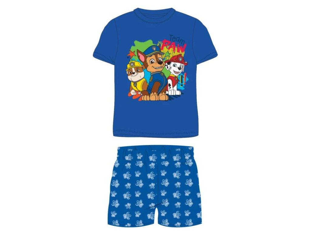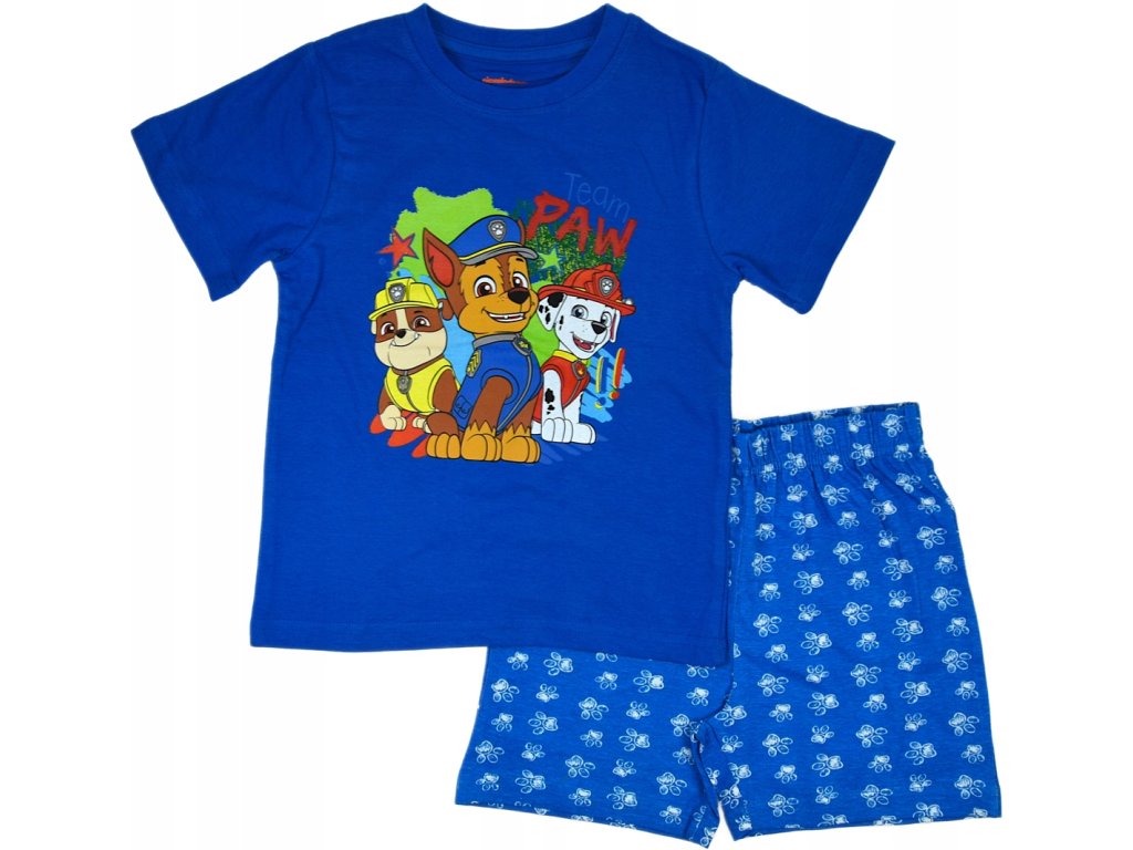 Chlapecké letní pyžamo s motivem Tlapková patrola, příjemné šortky díky elastickému gumovému průvleku. Materiál: 100% bavlna, 160 g/m². Barevné provedení - horní i spodní díl modrý s potiskem. Velikosti: 110 - 5 let116 - 6 let122 - 7 let128 - 8 let134 - 9 let140 - 10 letVelikost vyjadřuje výšku dítěte v cm, věk je orientační.Doplňkové parametry