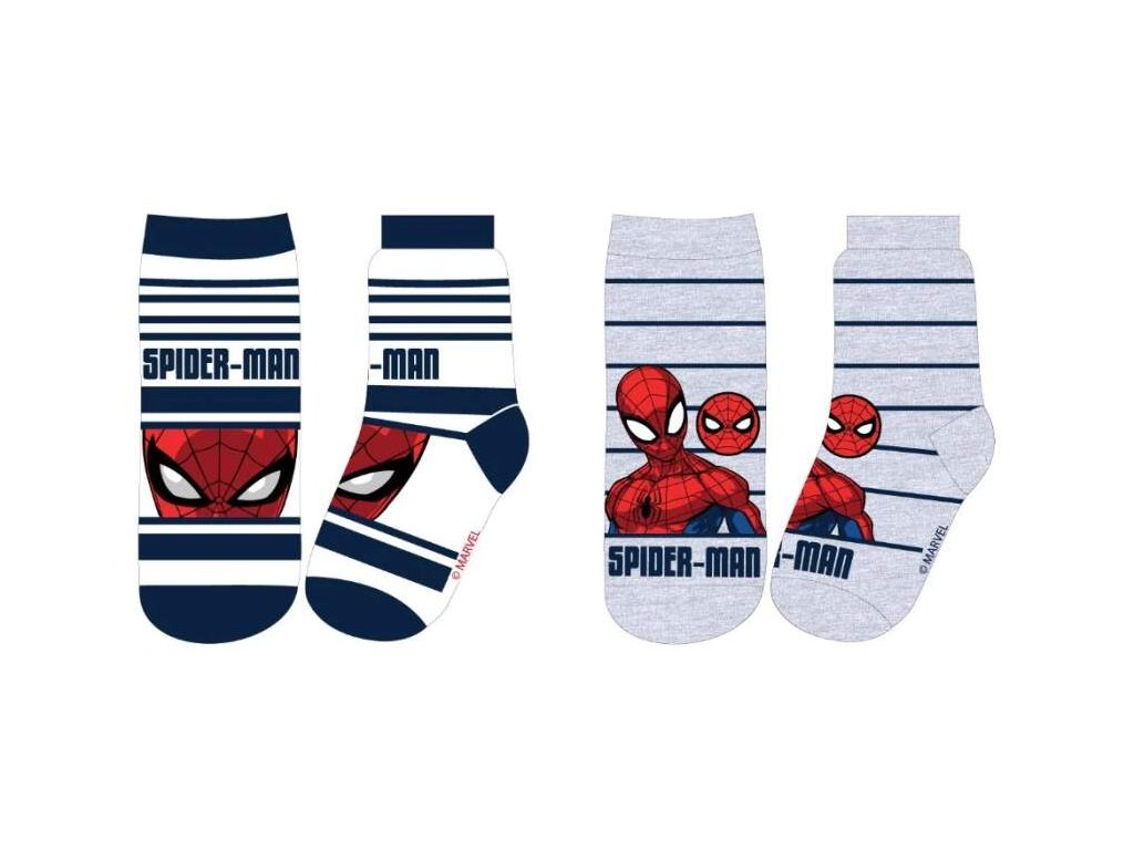 Chlapecké ponožky v designu hrdiny Spiderman, sada 2 ks párů, 1 bílomodré s potiskem, materiál: 76% bavlna+ 23% polyester + 1% elastan a 1 pár šedé s potiskem, materiál: 60% bavlna + 21% polyester + 18% polyamid + 1% elastan. Ponožky perfektně přiléhají k noze, nestlačují a zároveň perfektně drží na noze a zajišťují vysoký komfort nošení. Ponožky jsou velmi pohodlné a díky použití kvalitních materiálů odolné proti praní a oděru. Měkké na dotek.Rozměry a velikosti:česká velikost - věk23/26 - 2/3 roky27/30 - 4/6 let31/34 - 7/9 letVěk je pouze orientační, rozhodující je délka chodidla.Doplňkové parametry