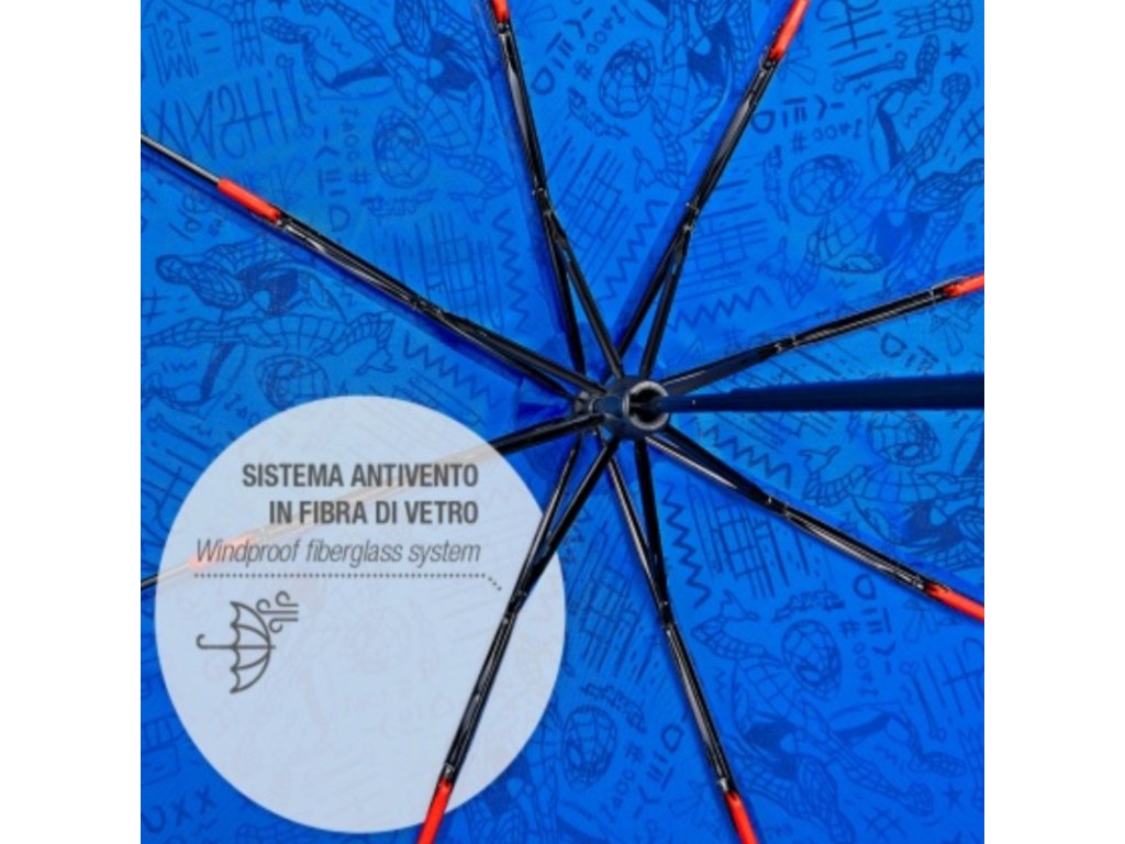 Deštník o průměru 91 cm poskytuje plné krytí před deštěm a větrem. Sklolaminátová konstrukce odolá nepřízni počasí a safeguard systém při manuálním otevírání chrání dětské prsty. Po složení je deštník kompaktní (23 cm) a váží pouhých 256 g, což jej činí ideálním společníkem do školy či na výlety. Originální Spiderman motiv potěší každého malého fanouška Marvely.