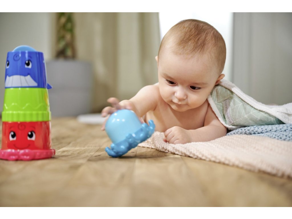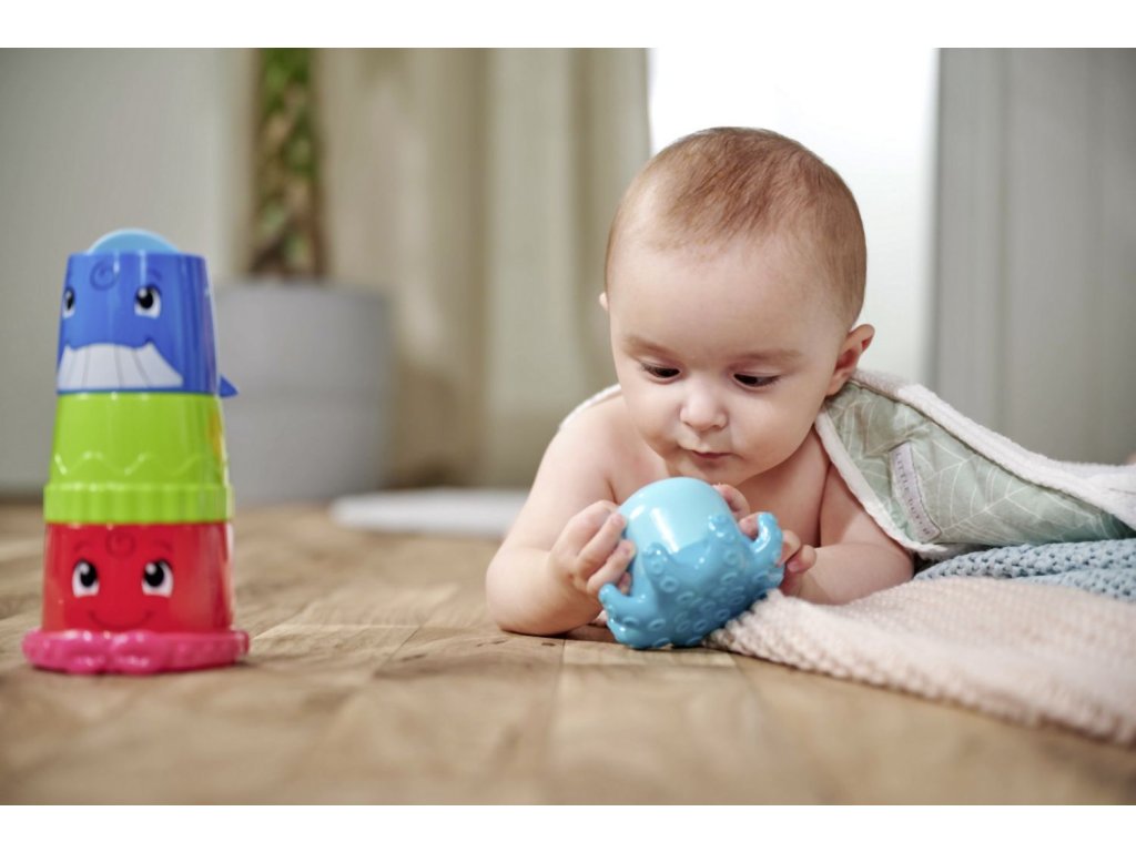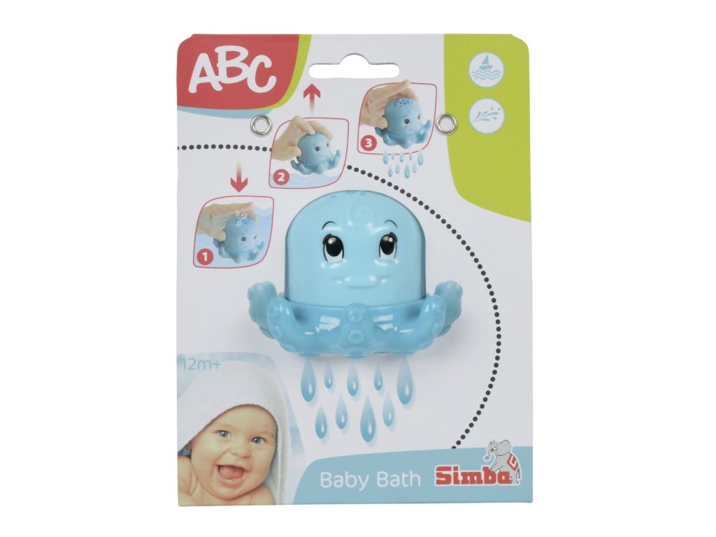 Chobotnička do vany pro zábavnější koupání. Při ponoření do vody se naplní vodou, přidržením otvorů na hlavičce a vyzvednutím chobotničky z vody, voda zůstane uvnitř. Následným uvolněním voda vyteče spodem jako "sprška". Velikost 10 cm.Doplňkové parametry