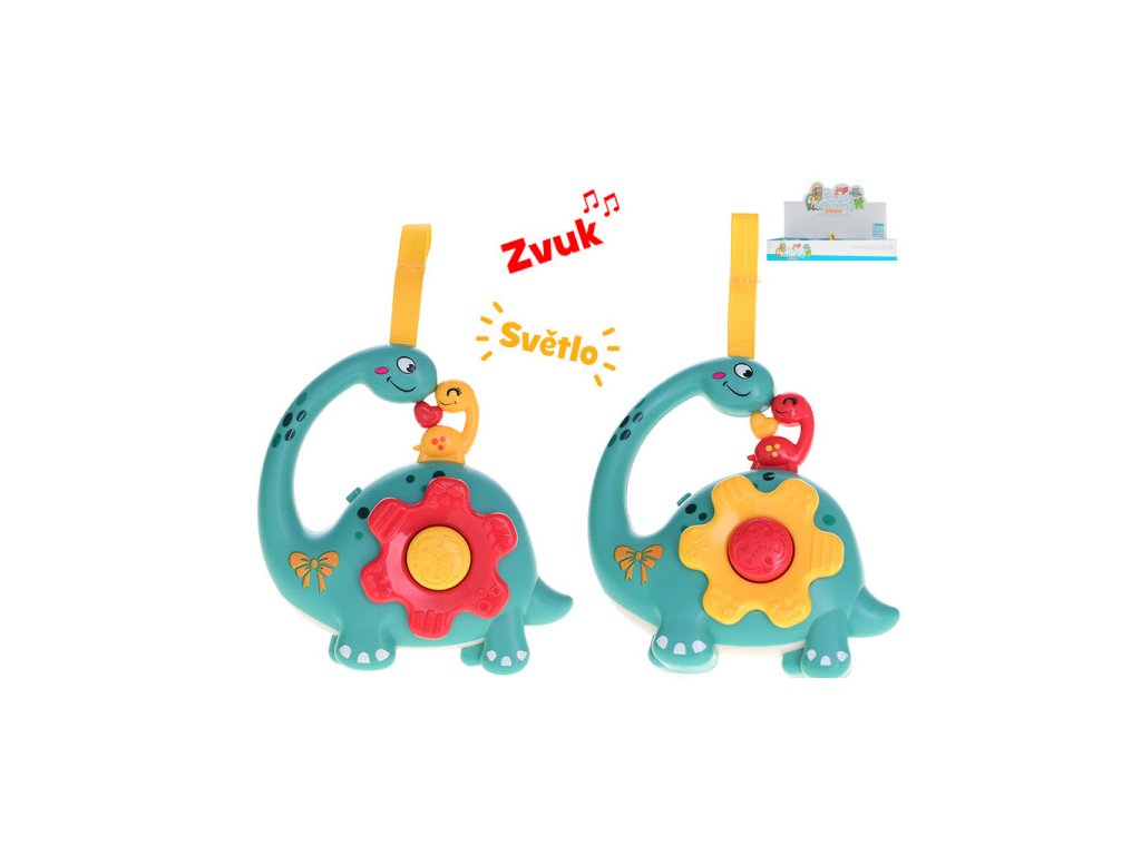 Chrastítko dinosaurus 12cm na baterie se světlem a zvukem, 2barvy, 12m+