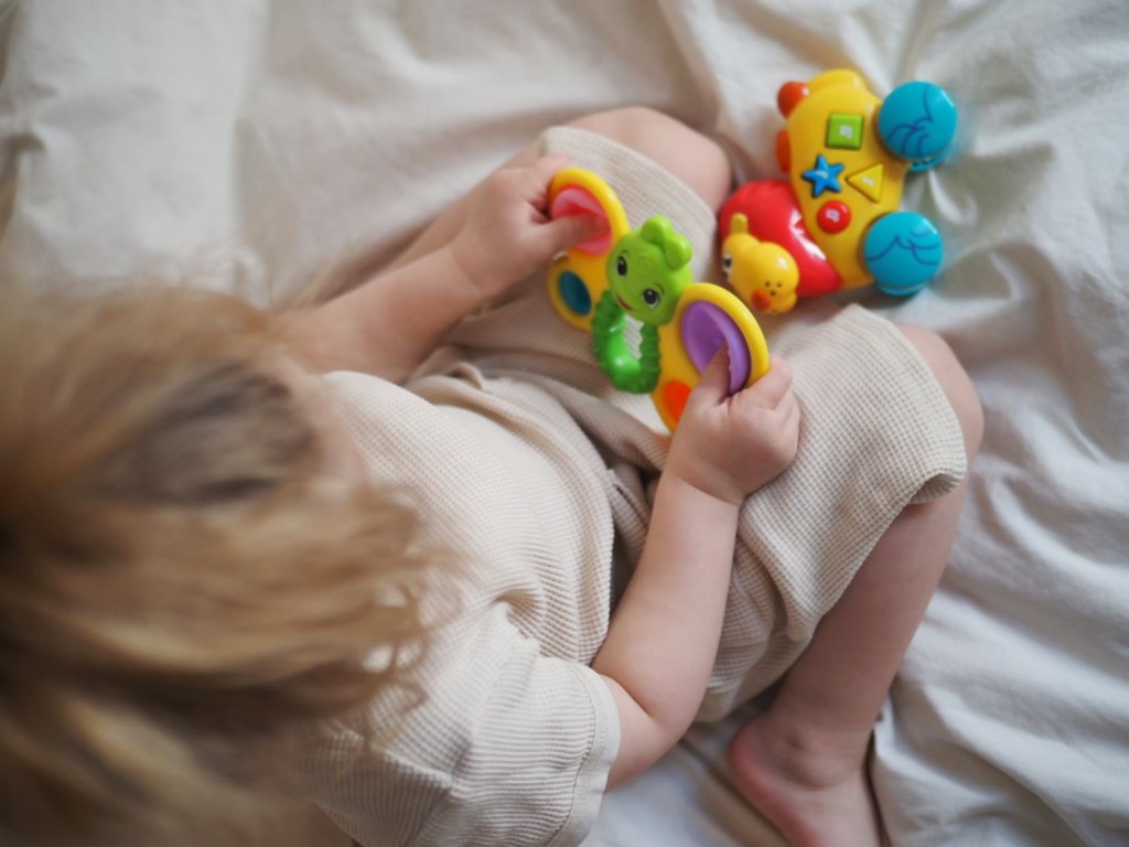 Veselý barevný motýl s rukojetí pro snadné držení a se čtyřmi různými měkkými výplněmi. Délka 14 cm.Doplňkové parametry