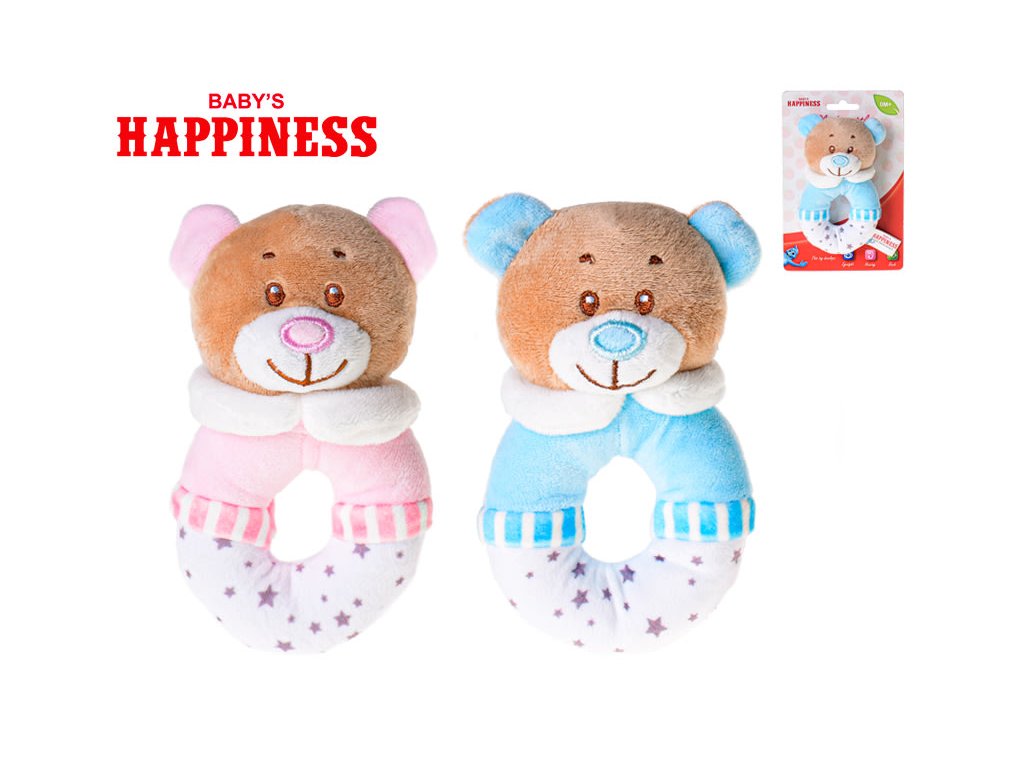 Chrastítko plyšový medvídek 13cm, 2barvy, 0m+, na kartě, v sáčku