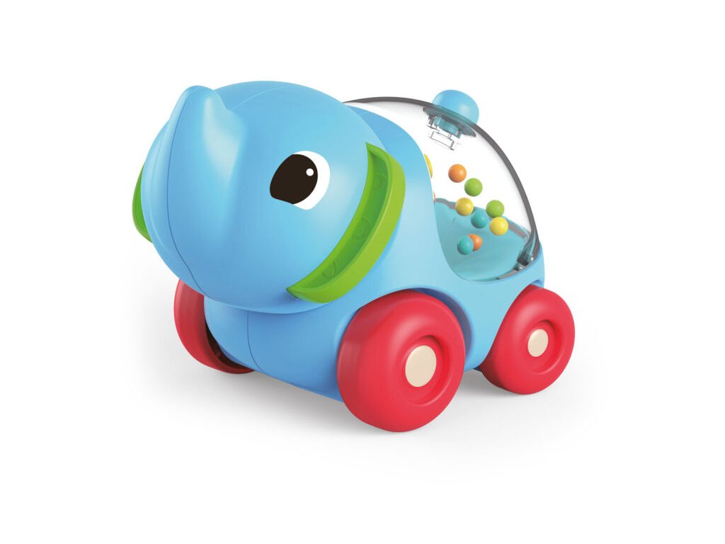 Chrastítko slon na kolečkách. Rozměry hračky 8,3x11x9 cm. Při jízdě chrastí. Doporučený věk: od 12 měsícůDoplňkové parametry