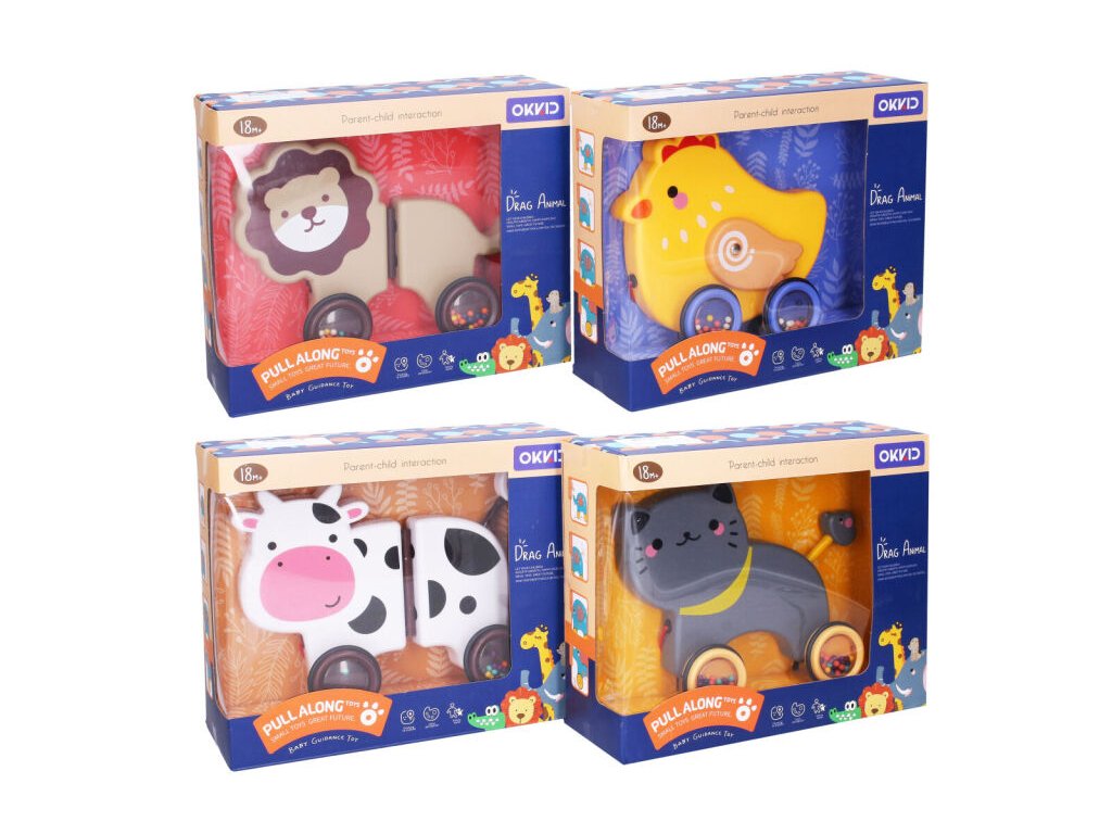 Chrastítko zvířátko na provázku. Velikost 19 cm. 4 varianty - kuře, kočka, lev, kráva. Volná kola. Požadovanou variantu uveďte prosím do poznámky. Nebude-li uvedeno, zasíláme dle skladových možností. Cena za 1 ks.Doplňkové parametry
