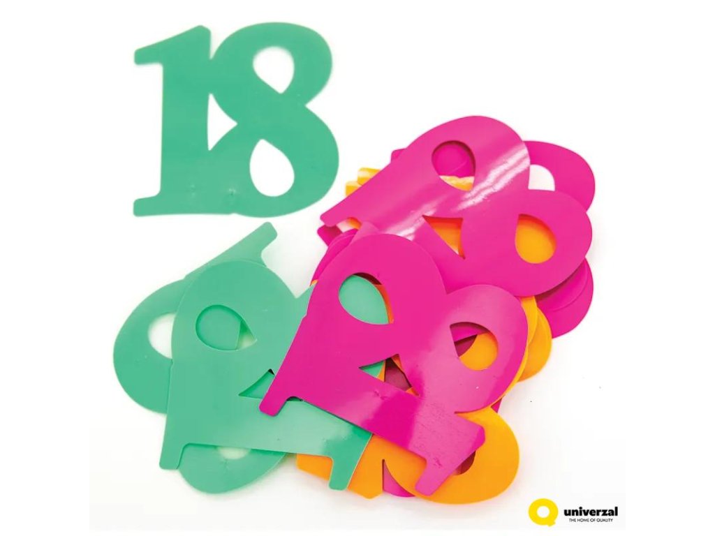 DEKORAČNÍ ČÍSLO 18 je vyrobeno z pružného plastu Rozměry 67 x 67 mm v tyrkysové, oranžové a růžové barvě. Hmotnost balení je 14g.Doplňkové parametry