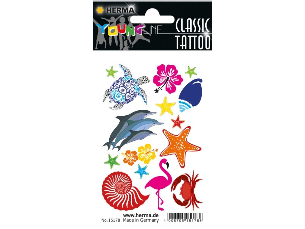 Aplikujte je během několika minut. Barva tetování HERMA CLASSIC je "Made in Germany" a je v souladu s nařízením EU o kosmetice. Vlastnosti Ref. č.: 15178 Verze: Dočasné tetováníMateriál: Přenosová fólieAdhezivní vlastnosti: omyvatelnýEan: 4008705151788Doplňkové parametry