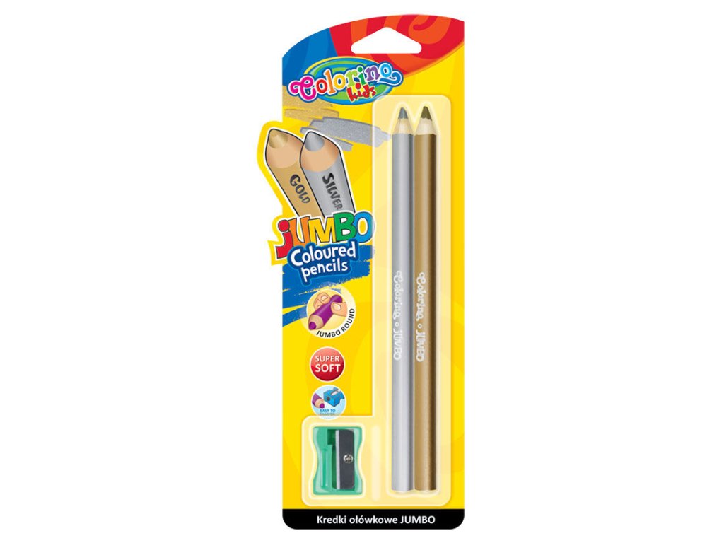 Kulaté pastelky Colorino Jumbo na blistru, zlatá a stříbrná + ořezávátko. Provedení: 2 barevyDoplňkové parametry